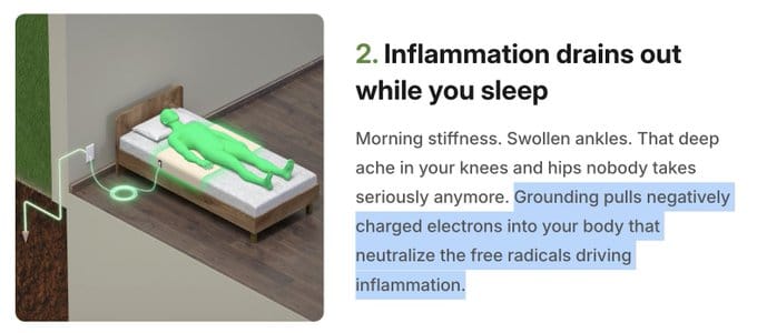 GroundingWell — "Earth's electrons neutralize free radicals." The grounding mechanism is the reason why this sheet does something your regular bedding can't.