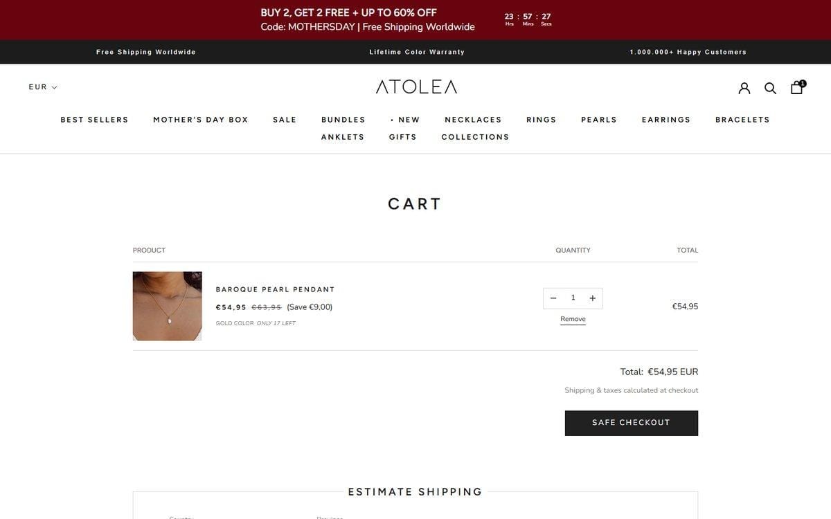 Most brands slap a shipping threshold in the cart and call it done. Atolea turns every element into a push toward a bigger basket.